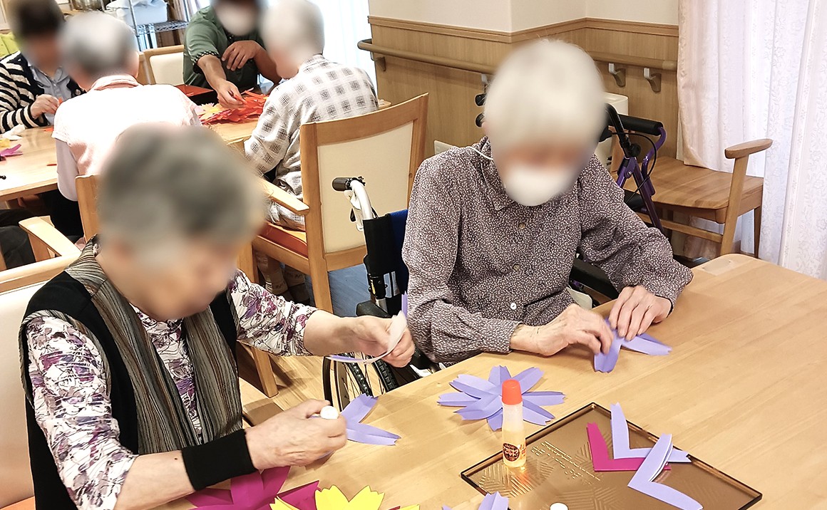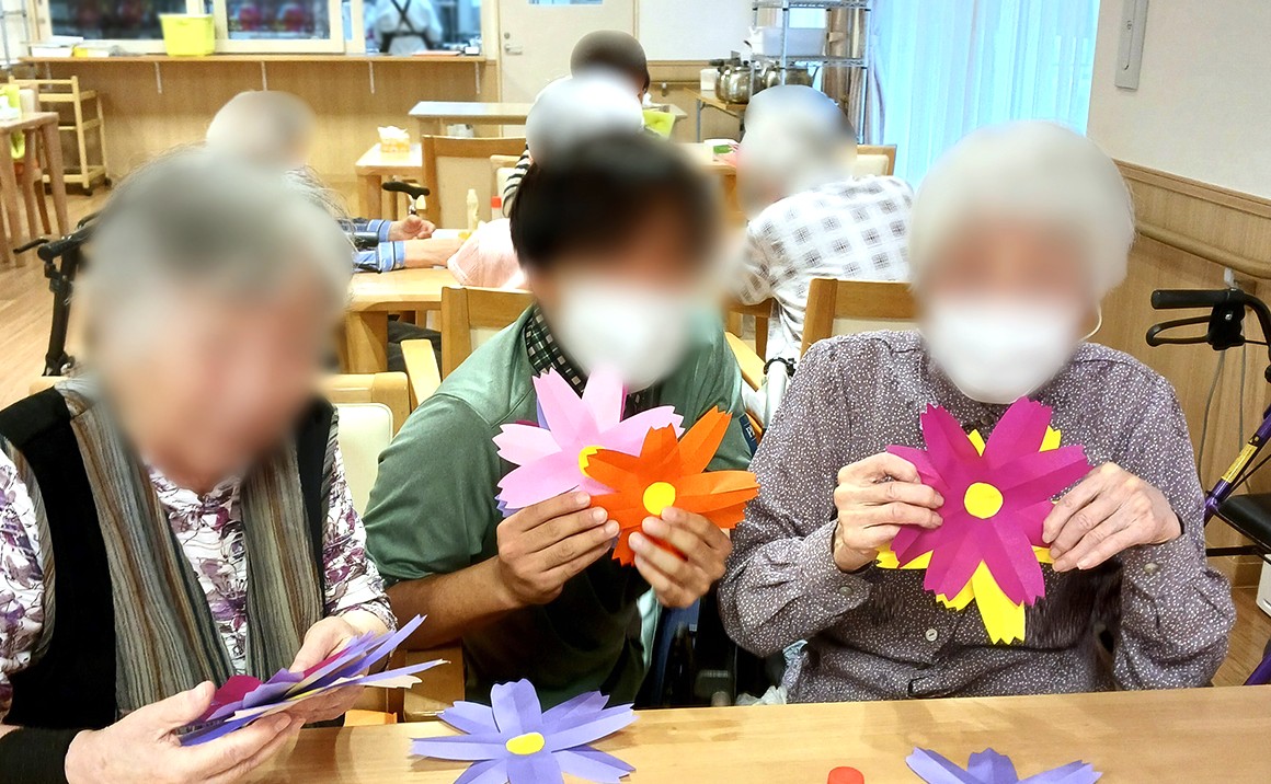 スタッフさんがご利用者様と一緒に、何かを制作中…