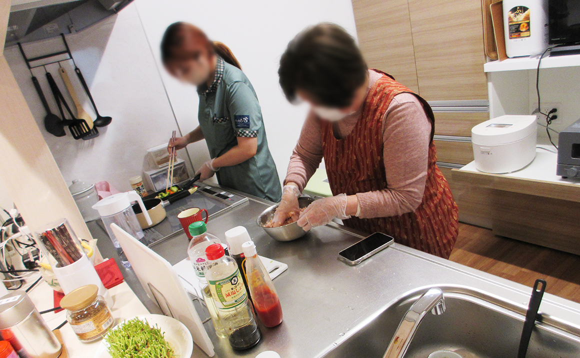 ホームでの食事は「今日のお昼は何にしますか?今日の夕食は何にしますか?何か食べたいものありますか?」という感じで、毎日入居者の方と食べたいものを話し合い決めています。