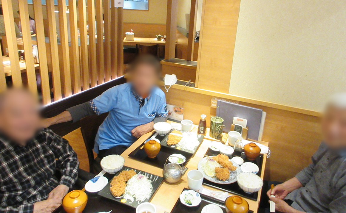 男性ご利用者2名に何が食べたいか聞いた結果、とんかつが食べたいということで、スタッフ2名含めた計4名で荻窪のルミネにある「とんかつ和幸」に行きました。