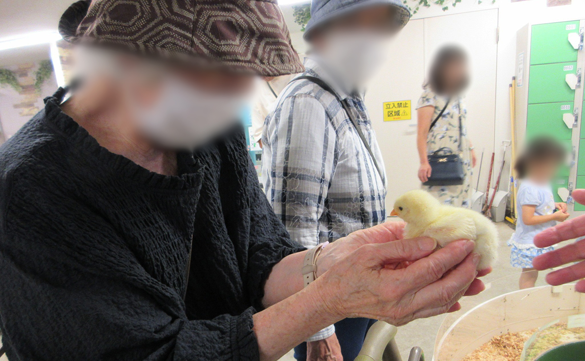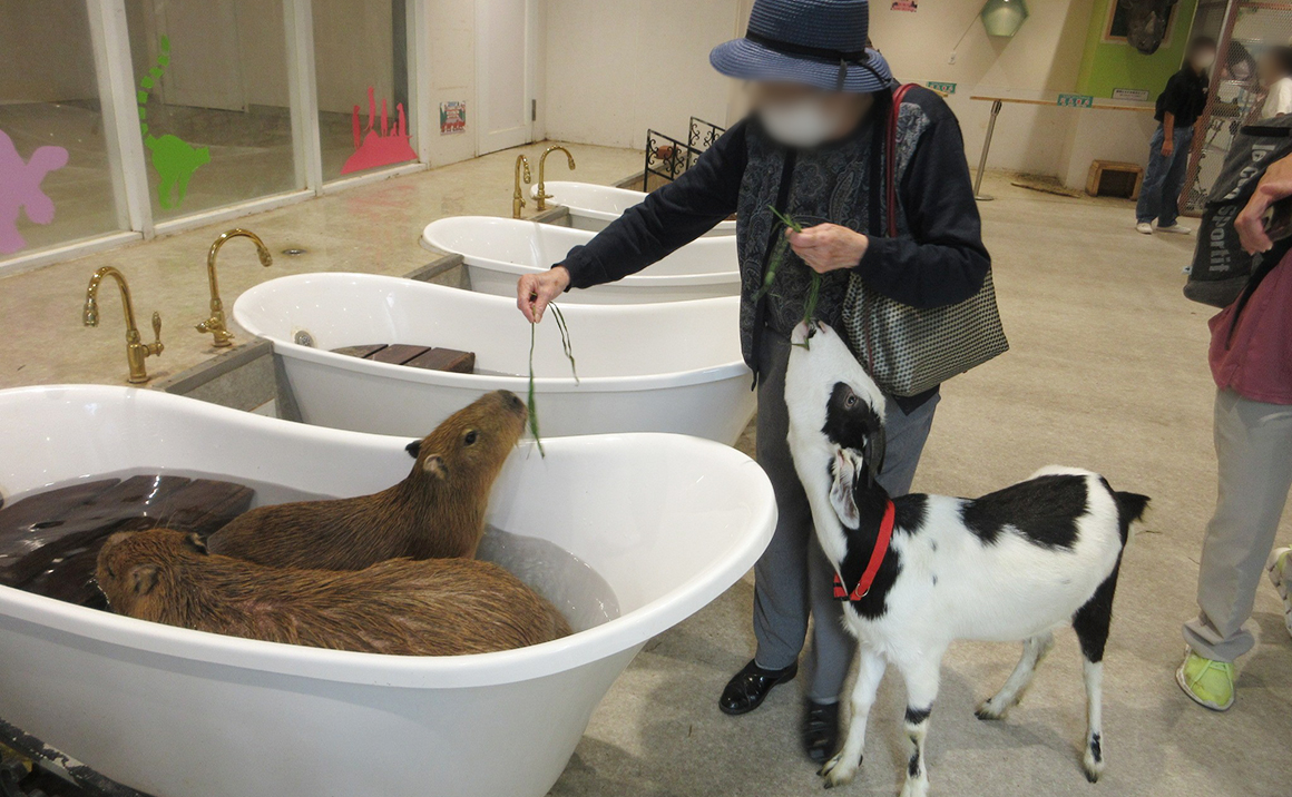 道に迷いながらも、アニタッチに到着し、ヒヨコやハリネズミ、お風呂に入っているカピバラなど、たくさんの動物を見て、実際に触れ、「可愛い~♡」と、皆様自然と目尻が緩んでいました。