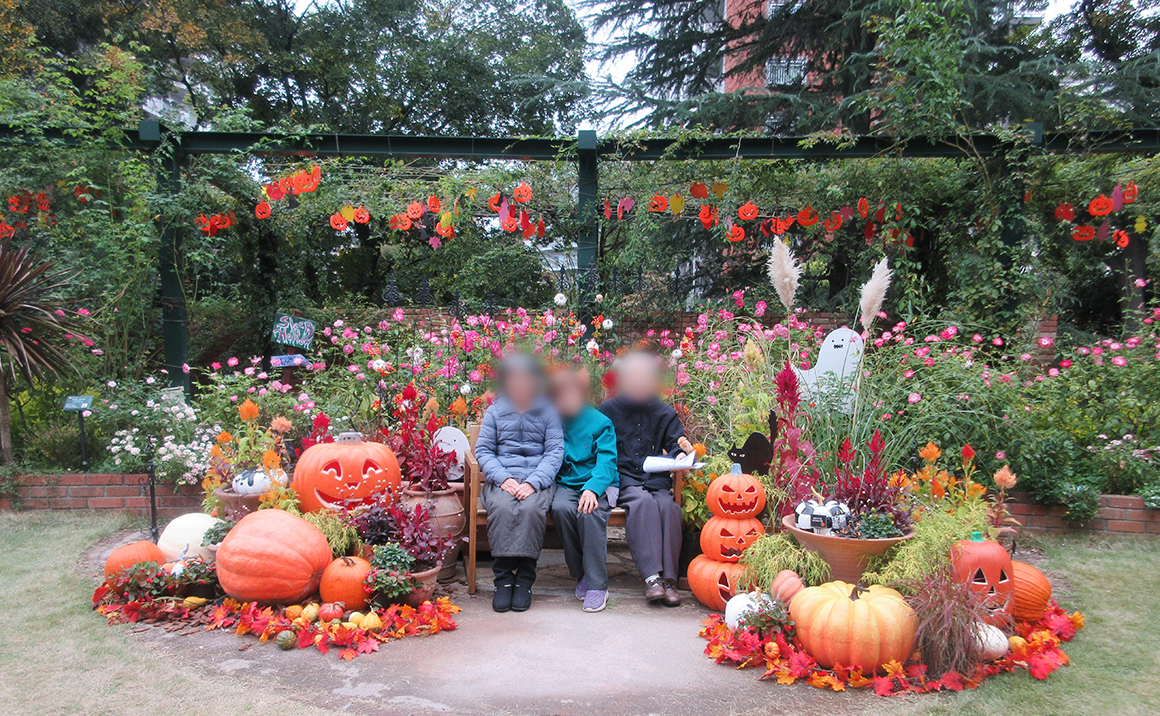 本日はハロウィンということで、午前中に近くの保育園の子どもたちと交流を行い、かわいらしい仮装姿に皆様も笑顔を見せておられました。