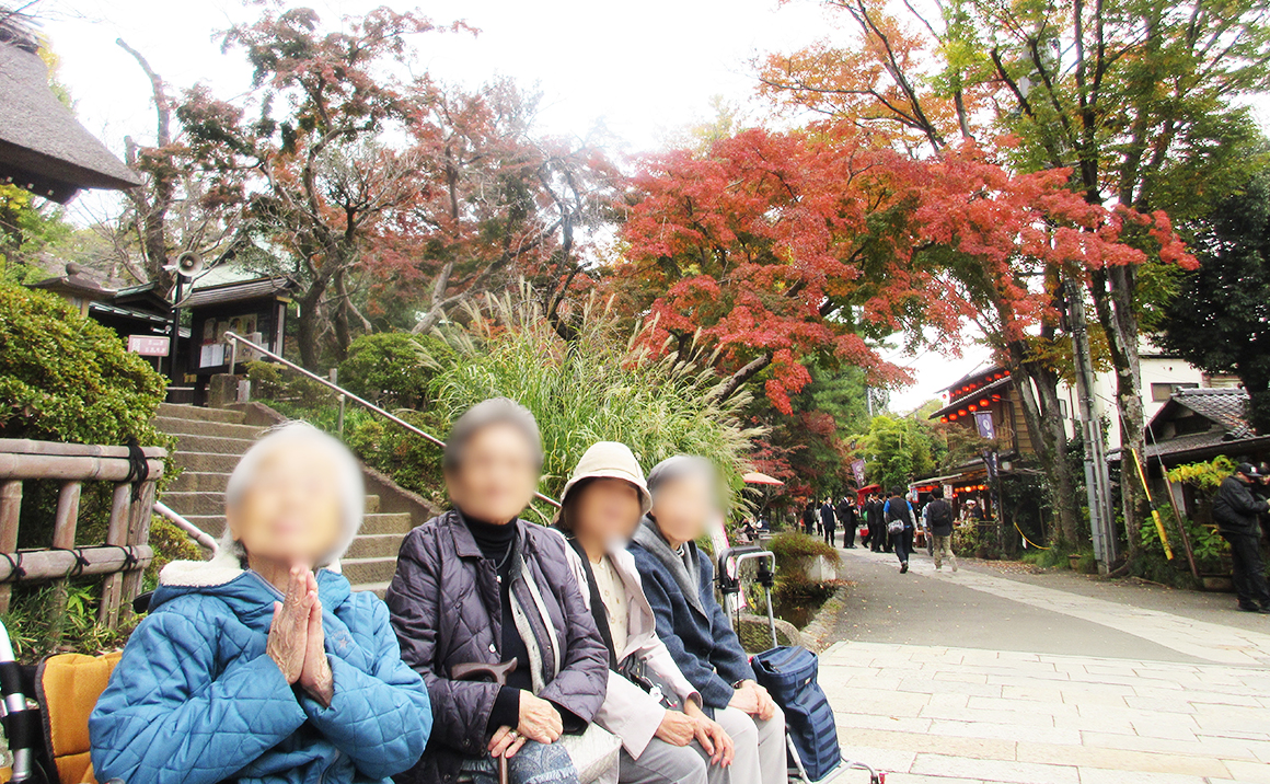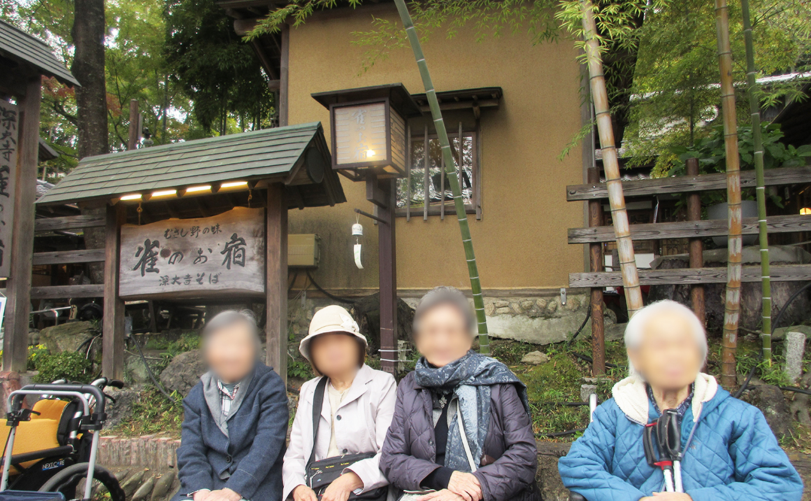 そろそろ秋になりだんだん紅葉してきたので、本日深大寺へ行ってきました。 寒くないし暑くないし曇っていましたがいい陽気でした。 皆さんと一緒に深大寺蕎麦を楽しく昼食に召し上がりました。 その後は深大寺を散策して紅葉しているもみじを見ながらお団子を召し上がり、皆様の楽しんでる笑顔がたくさん見られました。
