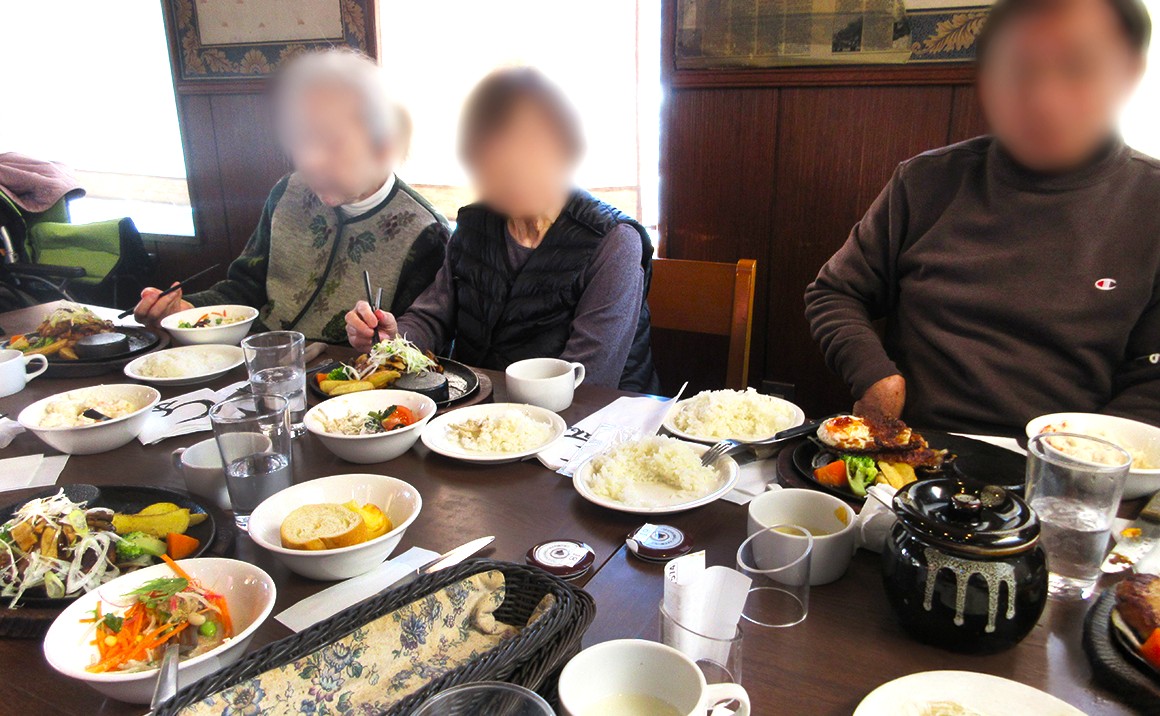 その後、昼食にハンバーグを食べましたが、いちごでお腹が満たされており、「美味しい」と仰りながらも、箸が進まない様子でした笑