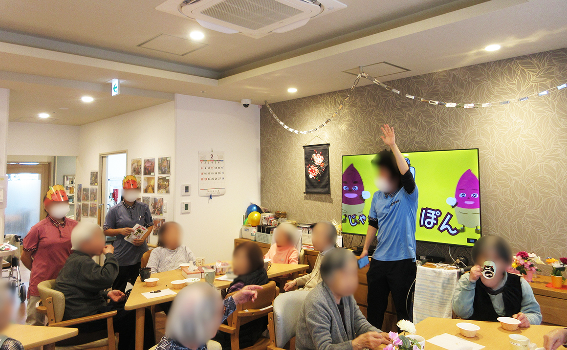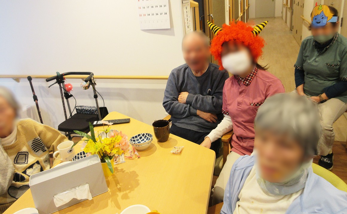 昼食はAとB別々で恵方巻を堪能されました。皆さんとても美味しそうに笑顔で頂いておりました。