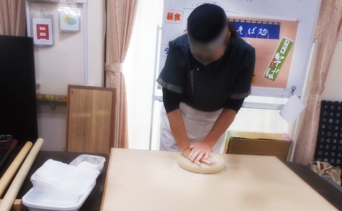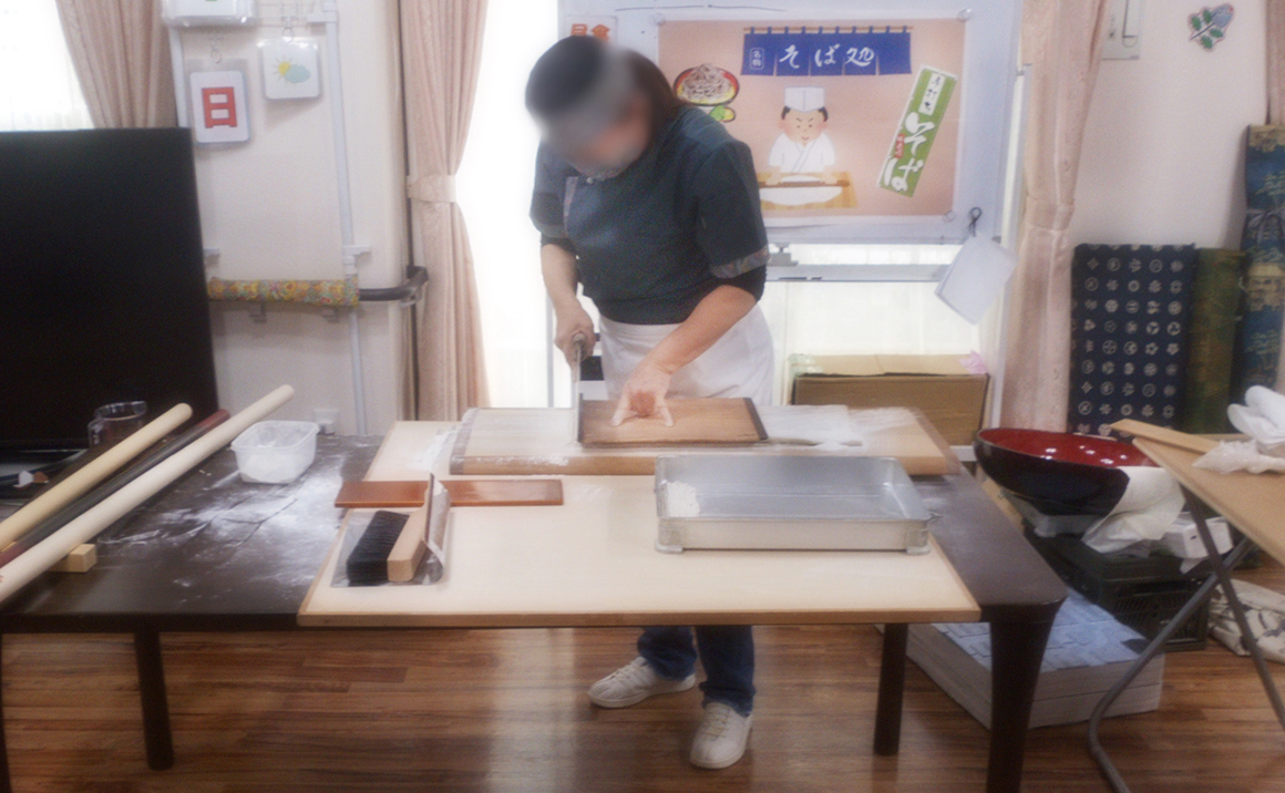 今年もおそばを打ちに来ていただきました。 ただ何度見ても圧巻で、参加していただいた利用者様やご家族様達も食い入るように見入ってました。 打ちあがったそばは、ご家族様も利用者様と一緒に食べ、「おいしい~」という声があちらこちらから上がっていました。 また今度、打ち立てそばを食べましょう!