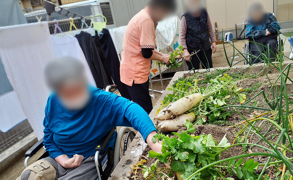 2月3日にひな祭りのレクリエーションをしました。 中旬には地元との小学校の総合学習で連続でたのしい家醍醐が選ばれ、ご利用者様と一緒にレクリエーションをされてともに喜んでおられました。 後半には庭にできた大根を抜き皆で食べました。