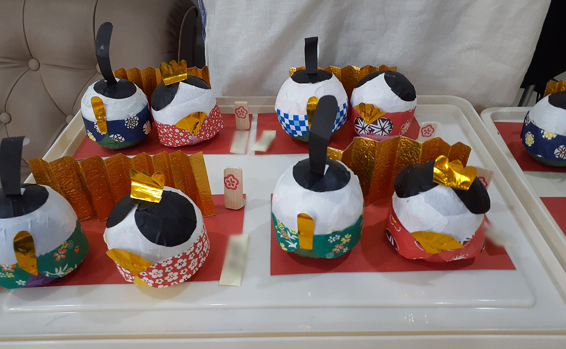 ひな祭りでは皆様にひな人形を作りました。 さくら祭りでは、お隣の社会福祉法人同和園さんに2年連続でご招待いただき1つのブースを任されました。 ゲームコーナーとバザーを行い皆様に楽しんで頂きました。 今後も地域や近隣施設との交流に励んで行きたいと思います。