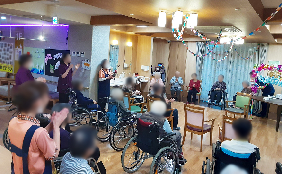 施設から徒歩1分の場所には、散歩に適した旧中川の遊歩道があり、春には桜が綺麗に咲くので気分転換を図ることができます。ご家族様や知人の方からも面会がしやすいと大変ご好評を頂いております。グループ会社スタッフが作る“作りたての美味しく温かいお食事” を提供させていただいております。朝食は和食・洋食から選べ、昼食は主菜4種からその日の気分によりその場でお選び頂けます。栄養士によるバランスのとれた献立をもとに、シェフが心を込めて毎食お作りいたします。作りたての美味しく温かいお食事をお好みで選んでお召し上がりいただけます。共有スペースにおいては、様々な趣味活動を行い、ご入居者様同士の賑やかなひとときを提供させていただきます。出来ることを増やして頂き、活動を通して達成感や生きる喜びを感じていただきます。午前中にはラジオ体操、午後には集団機能訓練を定期的に行い、心身の機能向上を図っております。