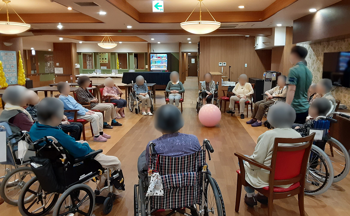 • プレザングラン新宿下落合 セラピーボールで大きなボール蹴り