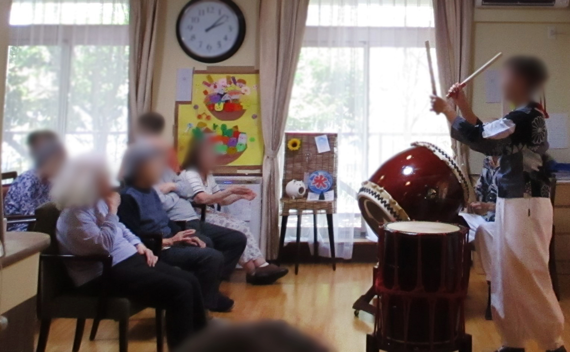 施設では、自宅の延長線上にあるアットホームな家感じていただけるよう、ご入居者様には自宅にいる時のようにできる事をできる限り自分で行って頂くことで、生活リハビリにつながるよう取り組んでおります。例えば車椅子が必要になった方の場合、座りながらでもできる事を実践していただくことで、少しづつできる事を増やしていただいております。段々と歳を重ねていくと若い頃なら容易にできた事もままならない事が増えていきます。その増えていく速さをゆっくりにする事は、支援方法により可能だと考えております。
