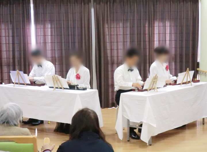 「プレザンメゾン八王子高倉」では、日常生活の中で、ご入居者様が持っている力を十分発揮できる機会を作ることに力を入れています。外部ボランティア様のご協力のもと、ちぎり絵サークル、習字サークル、吹き矢サークル、健康体操教室を立ち上げ、ご家族様からも大変喜んでいただいております。また、ご入居者様とスタッフとで協力して制作した作品を作品展に出品し、ご入居者様をお連れして、生きる活力のお力添えとなるよう努めています。また当施設は、月間レクリエーションにも力を入れており、年に2回の日帰りバス旅行、近隣レストランへ外食、近隣の神社や公園等へのお散歩等を行っています。毎日午後からレクリエーションの時間があり、フロア毎に歌やクイズ、ラジオ体操等を実施しています。いつも元気で笑ったり、また集中して力を発揮する…そんな充実した生活を送れるようスタッフ一同心からお手伝いをさせていただいています。上品なマンションのような外観。和を基調とした作り。 まるで旅館にでも泊まりに来たような気分になれる半露天の石造りのお風呂。 特徴ある設備がそろった施設となっております。