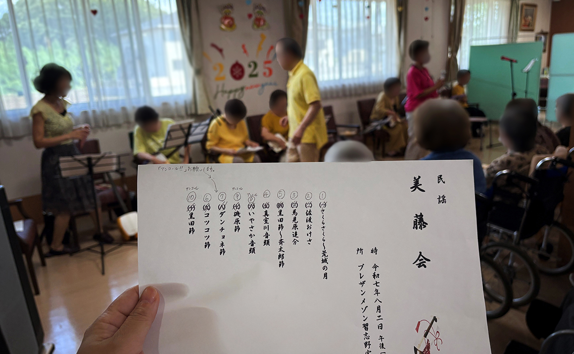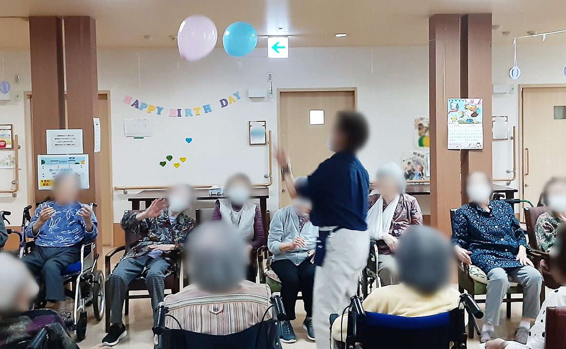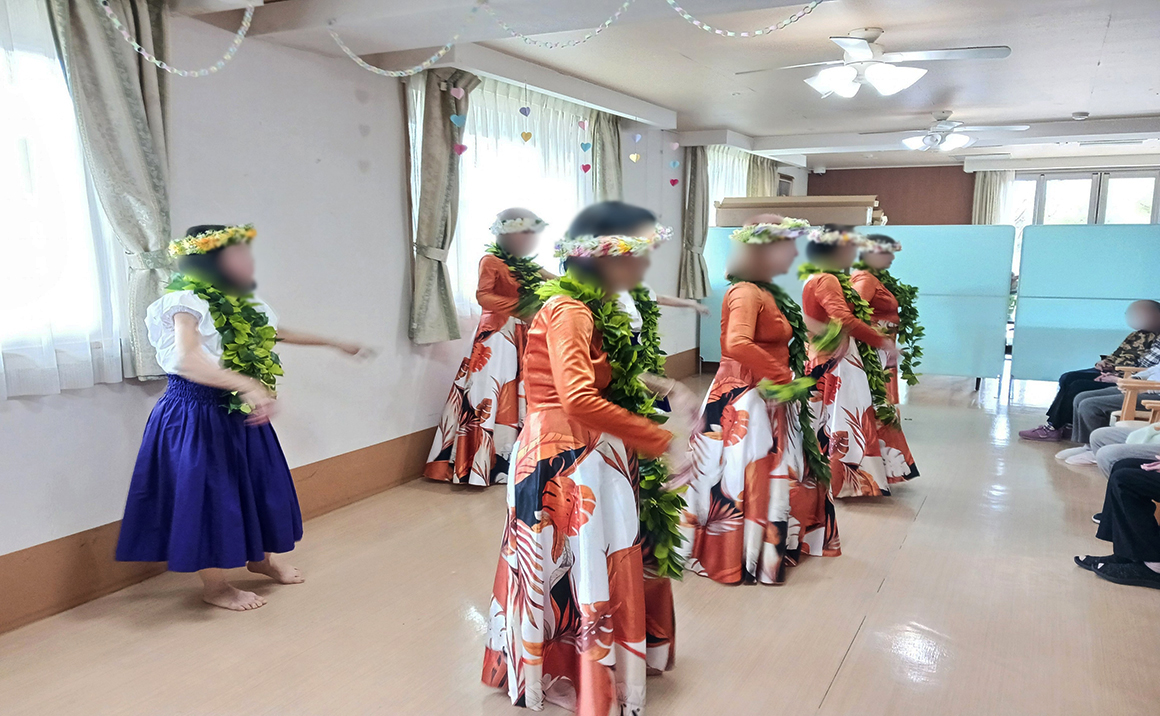京成実籾駅南口右手へ進んで、歯科医院とコインパーキングの間の道を進みますと施設が見えてきます。駅より徒歩3分という好立地の場所にあります。実籾商店街道路より一本内側に施設がある為、駅近とは思えないほど、とても静かで穏やかな場所です。当ホームでは、ボランティアやレクリエーションの充実を図っております。大正琴・童謡(歌)・太鼓等様々なボランティアが月に1度以上こられてます。イベントでは、夏祭り・文化祭・敬老会など行い、ご入居様者・ご家族様・スタッフとみんなでたのしくイベントを開催しております。夏の期間は、スタッフがアロハシャツを着て業務にあたらせて頂いております。ご入居者様・ご家族様に、とてもご好評いただいております。「たのしい」を生み出す施設でありたいと、職員一同明るく・元気にお手伝いをさせて頂いております。ご入居者様に、ご満足いただけるサービスを提供いたします。