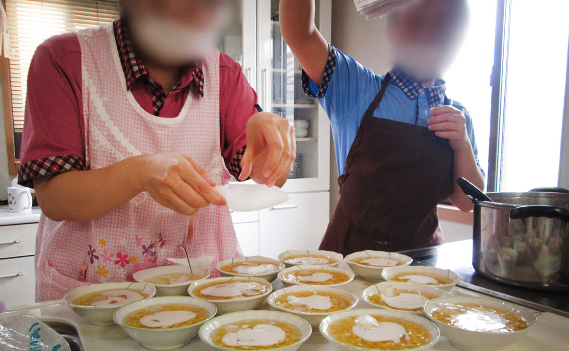 当ホームでは、毎朝近くの神社で近隣住民の方とラジオ体操を行いコミュニケーションを図っております。ほぼ毎月、近くの喫茶店やスーパーのフードコートに外出し、お茶やおやつを楽しんで頂いたり、施設内ではスタッフとおやつ作りに参加して頂いております。また春、秋と気候の良い時期には昼食を兼ねて遠足にも出かけます。ご入居者様だけではなく、ご家族様にも、入って良かったと思って頂ける施設作りをしていきます。常に"たのしい""自分らしい" 暮らしを支援してまいります。 一緒に買い物や洗濯をしたり、食事を作ったりし、お互いに助け合いながら自立した生活が営まれるようにサポートいたします。