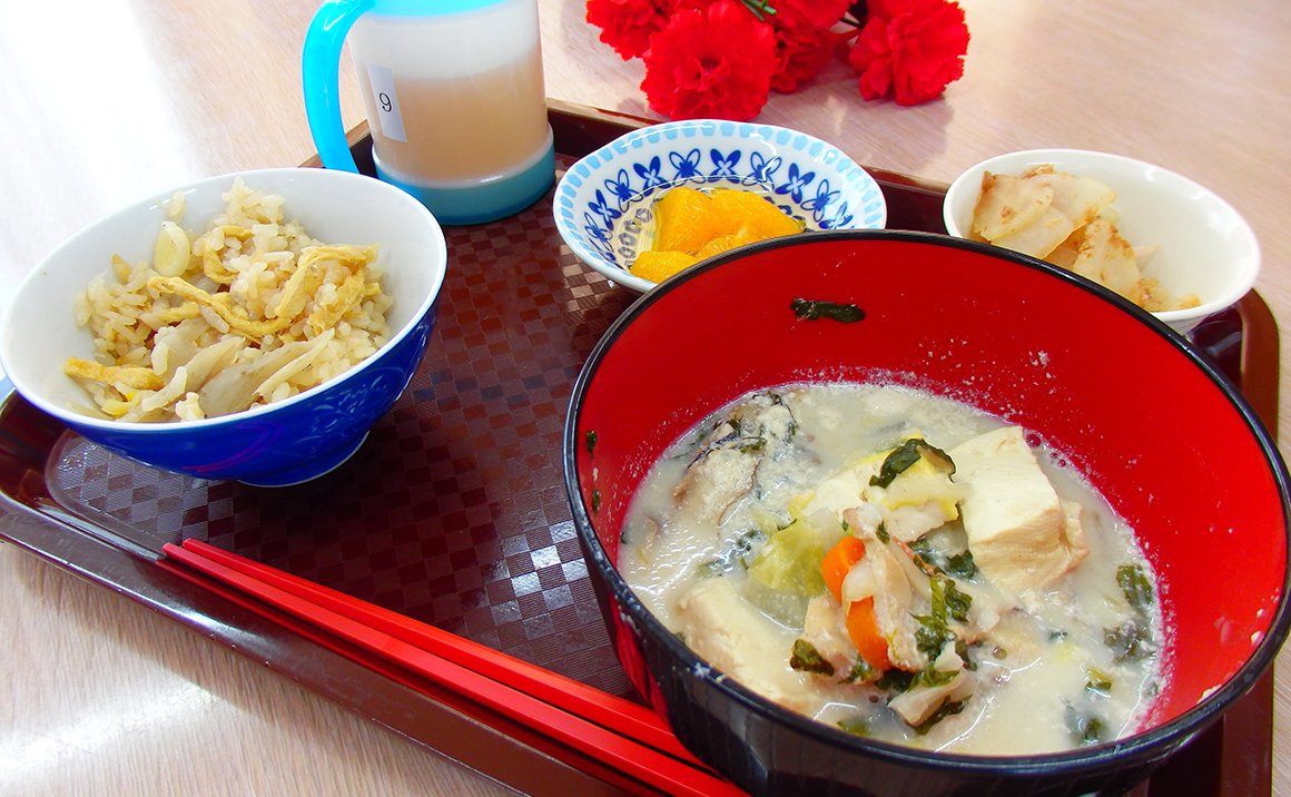 当ホームでは、施設に入居していても地域の料理が楽しめるよう、毎月郷土料理を提供しています。鹿児島や北海道などその地域でしか味わう事のできないものを食べる事によって、食べる事への喜びや楽しさを感じていただけたらなと思っております。その他にも近隣の公園へのお散歩や、長居公園へお弁当を持参しての遠足、駒川商店街へのお買い物など地域との関わりを持ちながら、楽しく過ごしていただけるよう心掛けております。