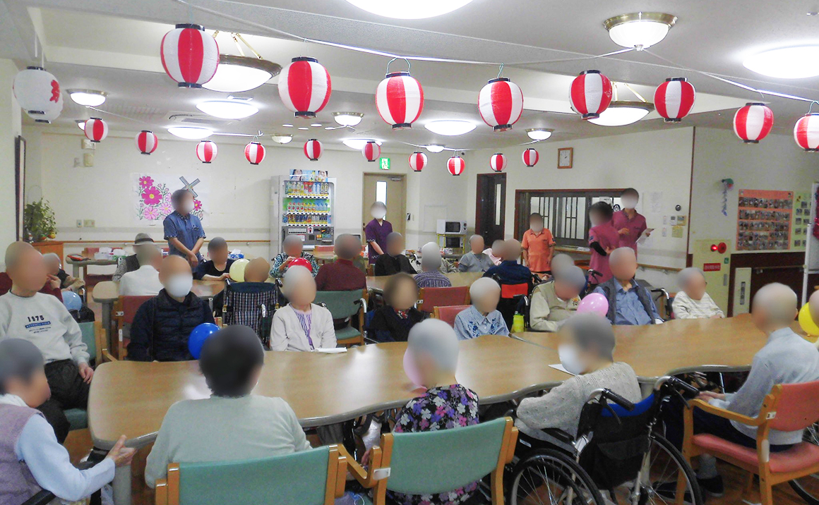 当ホームでは、リハビリに力を入れており、週3回の集団リハビリ・週2回の個人リハビリをプログラムに入れて、スタッフが実践しております。専属のPTによるプログラムメニューの計画・評価をして頂き、ご入居者様の残存機能を維持に向けて活動しております。閑静な住宅街の一角にあるアットホームな施設です。全室個室で、室内のレイアウトは自由に配置して頂けるためご自宅感覚で生活していただけます。フロアごとの談話室はフリースペースとしてお楽しみください。