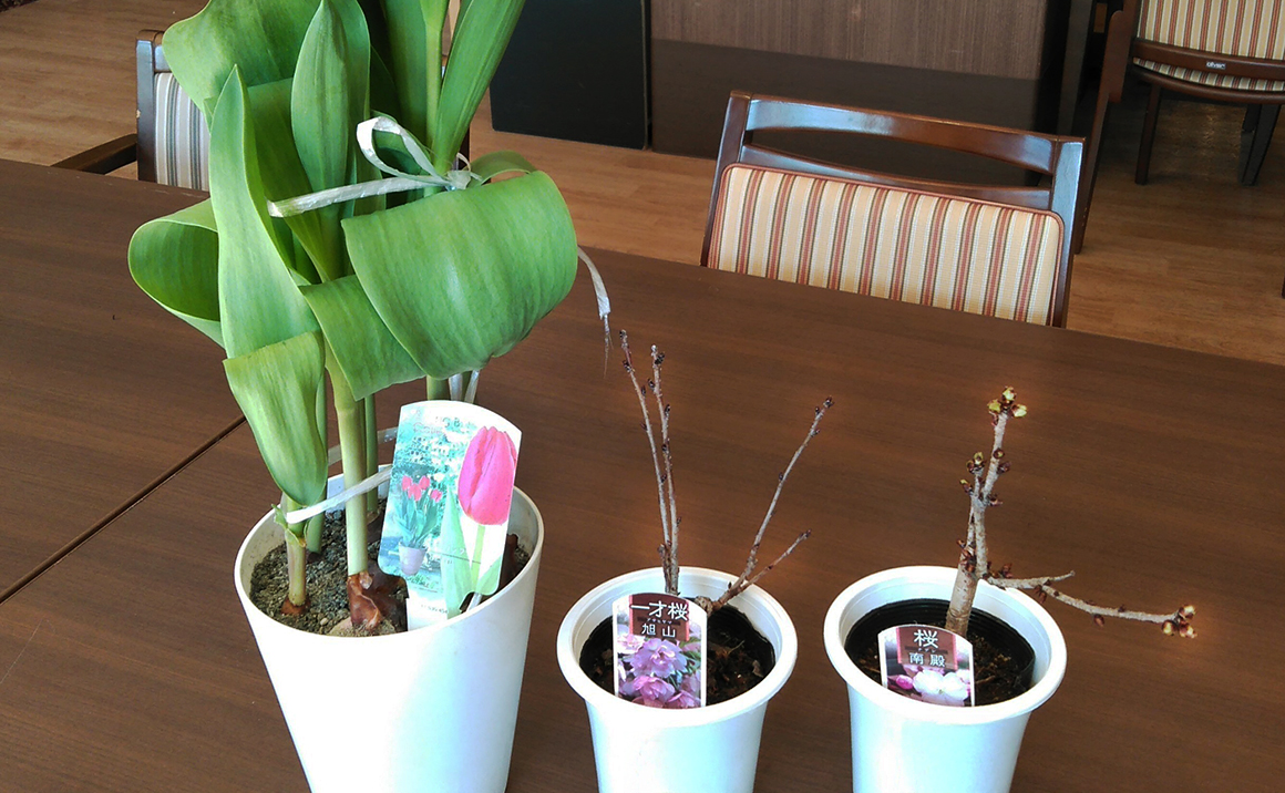 施設には様々なスペースがあり、施設の庭には四季折々の樹木を配し、園芸や菜園スペースも設けております。花や野菜を育てることも自立支援の一歩となります。またリハビリスペースも屋外にありますので施設の中だけでなく外に出て、リハビリを行うことができます。