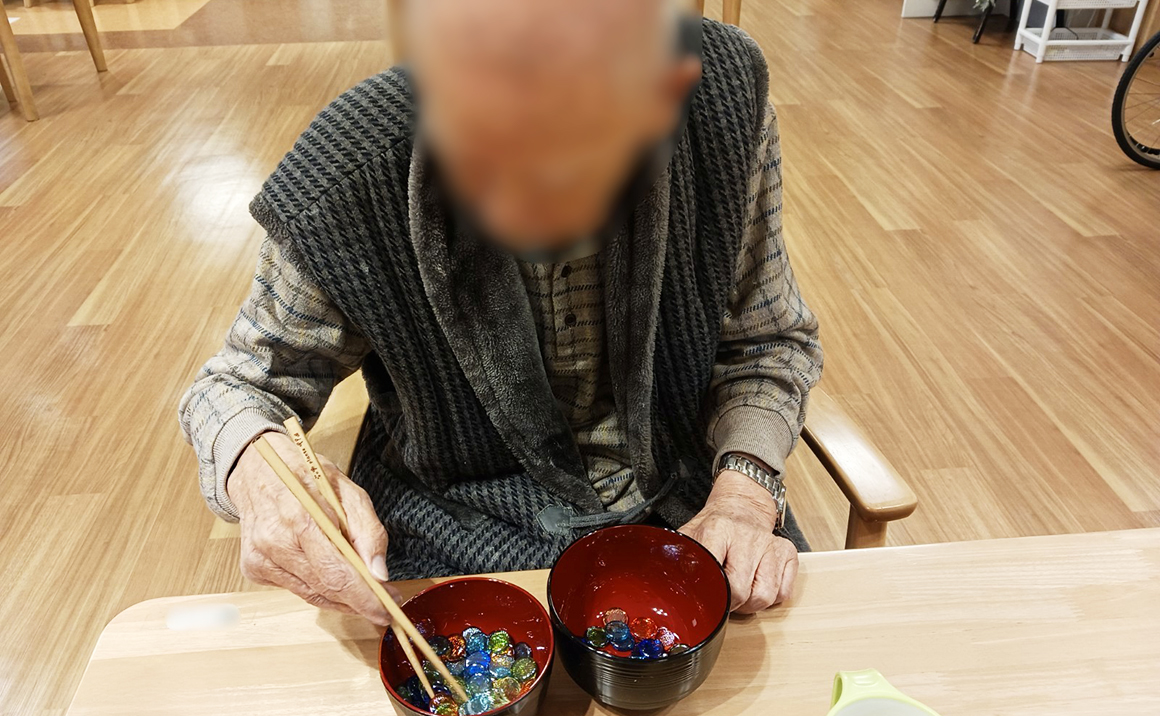 • プレザンメゾン西広島  レクリエーション 箸を使ったリハビリ