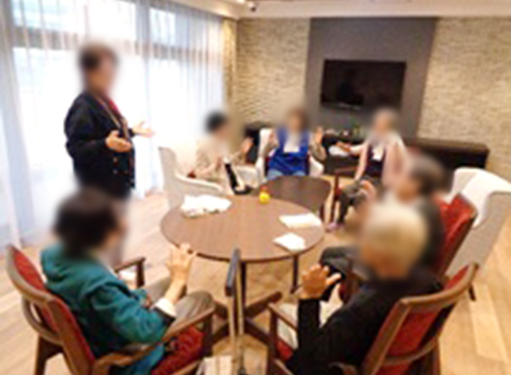 入居者さんとお話しすることはできませんでしたが、談話室のような場所で過ごされている姿を拝見しました。車椅子の方もいらっしゃいました。みなさん楽しそうに過ごされていました。