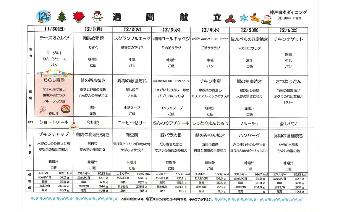 • 【12月施設カレンダー】プレザンメゾン神戸白水