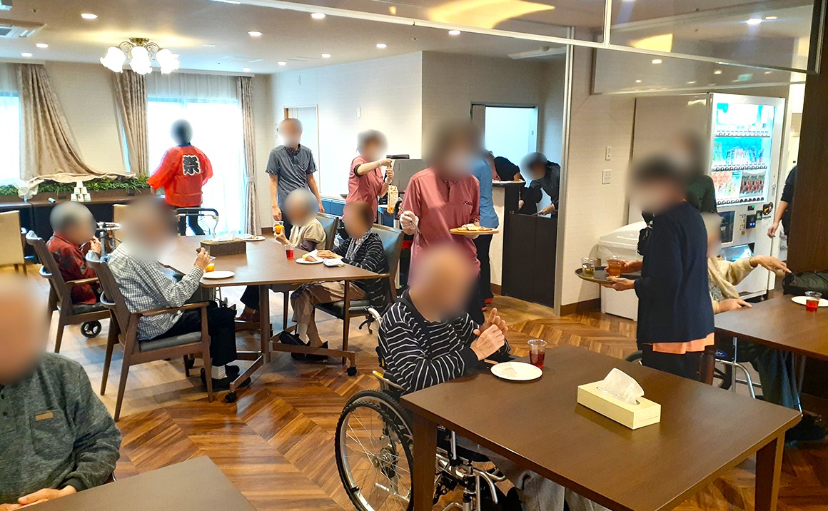 スタッフは介護の必要な方2.5名に対して、1名以上配置することで国の基準を上回る手厚い職員体制を整えています。医療面も充実しており、看護師が朝7時から夜8時まで常駐の上、医師も毎日ではないですが常駐し現在治療中の方の診察や、予防的な観点からのケアによって、体調面や不安なことなどの相談がしやすい環境となっております。また、医師がいない場合でもオンライン診察に対応していますので、安心してお過ごしいただけます。