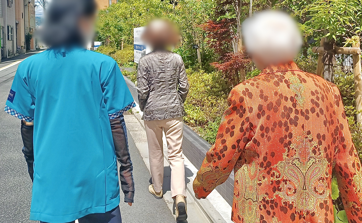 • プレザングラン京都円町 機能訓練士と屋外歩行