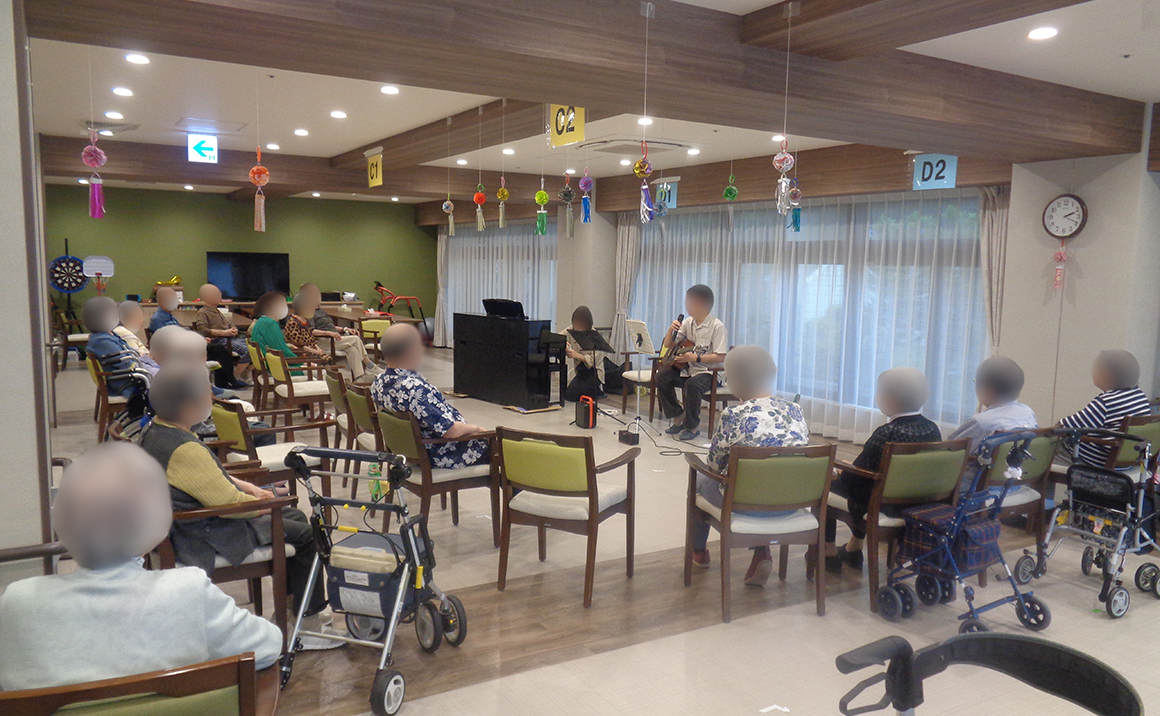 ご入居者様が楽しんで日々の生活が送れるよう、ご自身の好きなことができる多彩なアクティビティを用意し日常生活での生きがいを提供してまいります。また、地域行事への参加、施設内イベントの周知を通した地域交流の促進を行ってまいります。