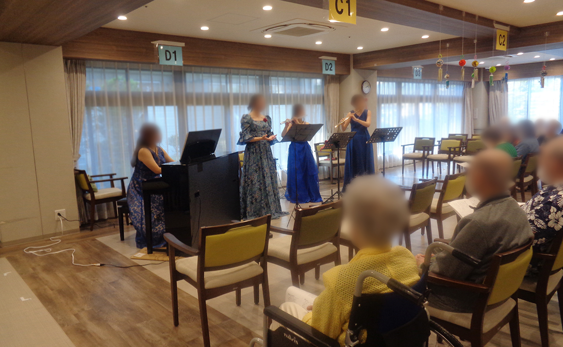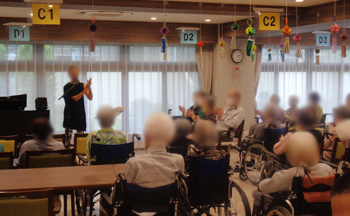 ご入居者様が楽しんで日々の生活が送れるよう、ご自身の好きなことができる多彩なアクティビティを用意し日常生活での生きがいを提供してまいります。また、地域行事への参加、施設内イベントの周知を通した地域交流の促進を行ってまいります。