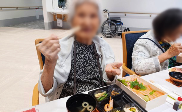 朝食・昼食は複数のメニューからの選択制となっており、選んでから調理するため温かく美味しいお食事が楽しめます。さらに月に1回程度、季節感のある特別メニューもご用意いたします。