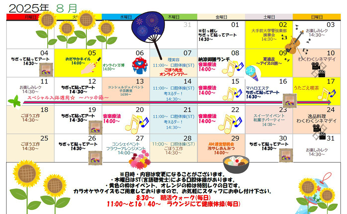 ご入居者様が「楽しく」「安心に」「自分らしく」暮らしていけるようにサポートを行ってまいります。