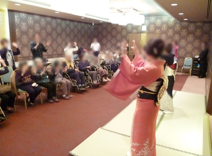 食後は2名の芸者さんによる踊りと芸者遊びに入居者様も引き込まれ、とても楽しんでいらっしゃいました。