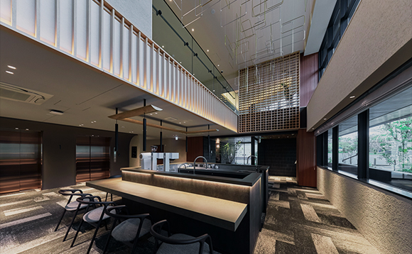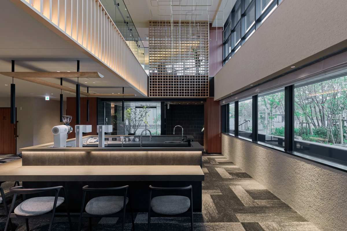 敷地内には、テニスコート約1.5面分の広さを誇る庭園が広がり、その景色を望むティーカウンターや、開放感あふれるレストランを設けています。 和と洋を絶妙に融合させた「京都らしい和モダン」なデザインを随所に取り入れ、落ち着いた雰囲気を演出しています。
