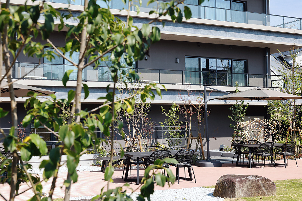 敷地内の庭園では、季節の花々が彩りを添えます。遊歩道も整備され、散歩や気分転換にぴったりの場所です。